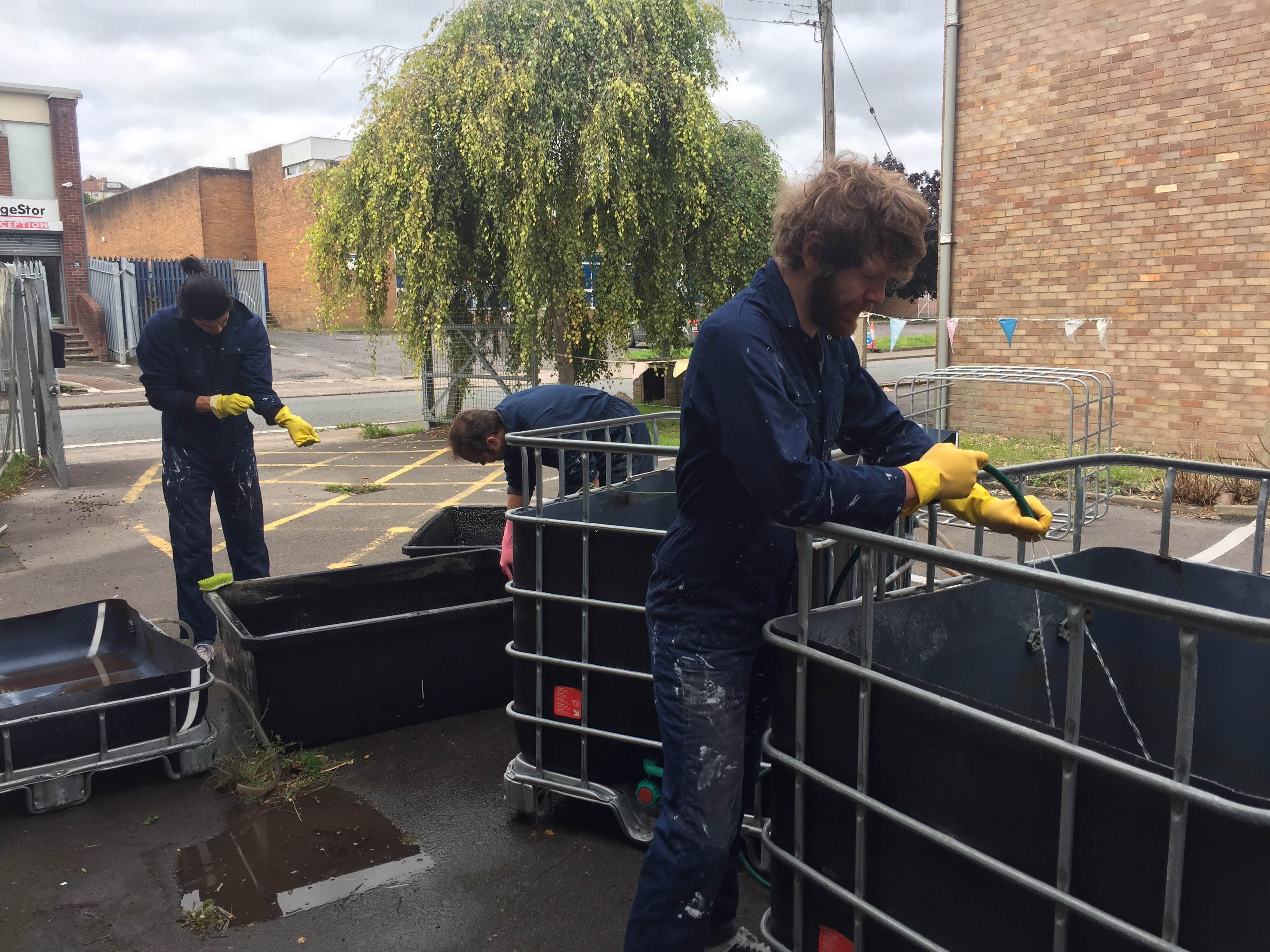 Some photos from today when we cleaned and sterilised our system after the pilot to prepare for the next installation of the course when we will put another ibc system into action together! Great work from our lovely team of volunteers! Also so many worms! A good sign of the health of the media beds!